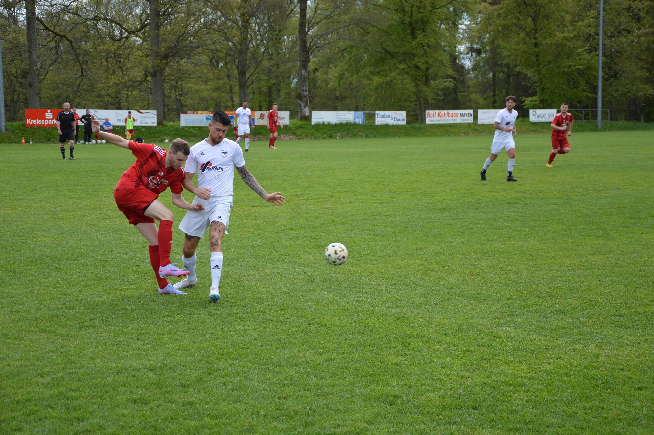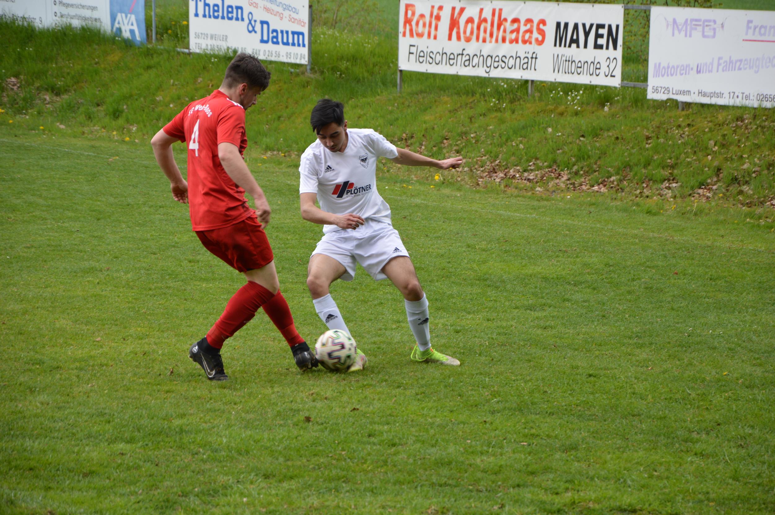 Die erste Fußballmannschaft konnte am Sonntagnachmittag einen Auswärtssieg auf dem Rasenplatz in Weiler einfahren und vertagte so die Entscheidung um die Meisterschaft in der Kreisliga B Mayen auf den letzten Spieltag. Gegen tiefstehende Gastgeber suchte der Tabellenzweite lange nach dem Schlüssel zum Erfolg. Ein Fernschuss des Plaidters Stefan Fuselbach gegen den Pfosten war die beste Chance im ersten Durchgang.