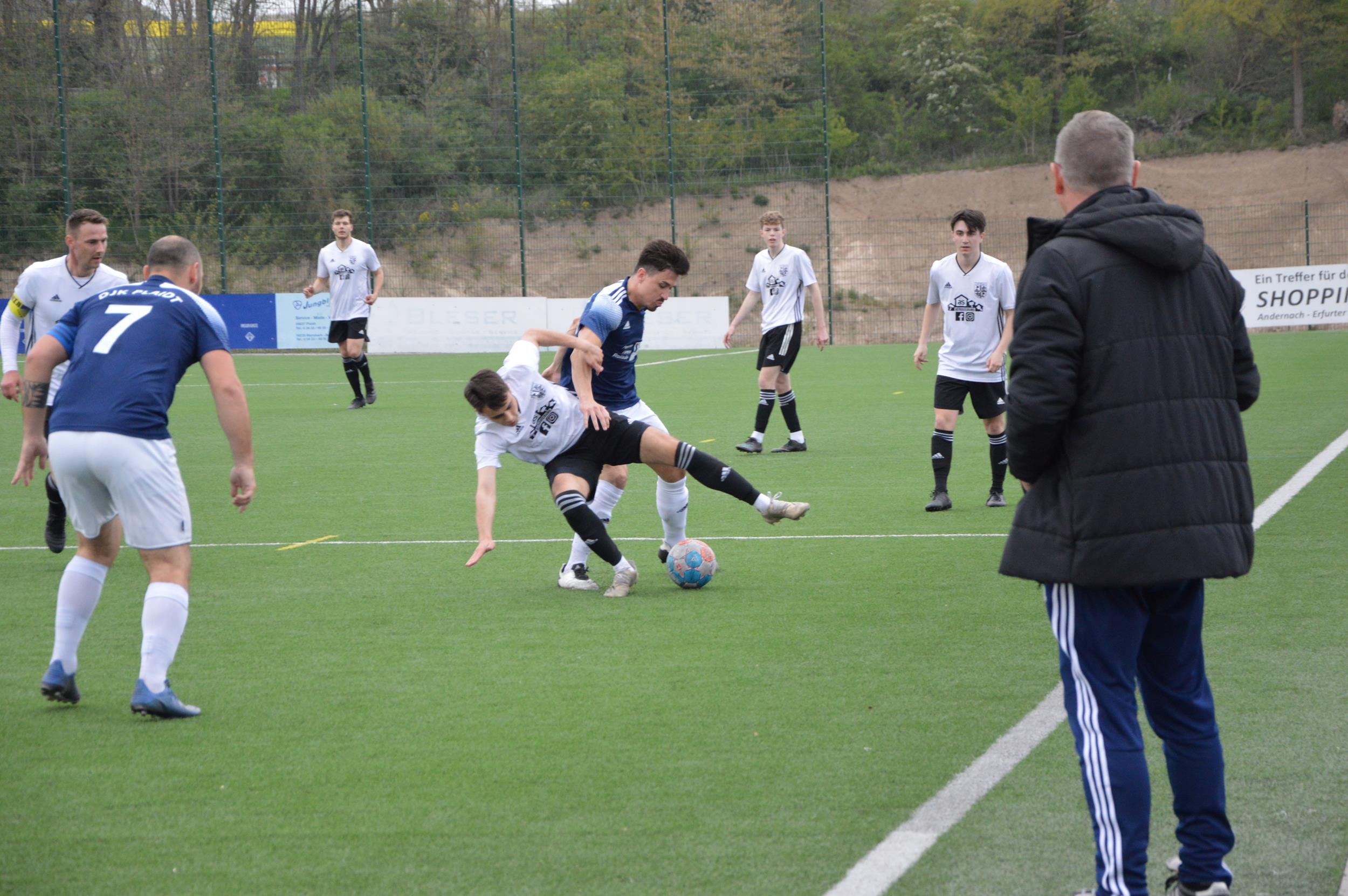 Nach dem Seitenwechsel drückte die Brodam-Elf weiter auf den Anschlusstreffer. Es dauerte allerdings bis zur 74. Minute ehe Mayens Youngster Leon Kohlhaas seine Farben nochmal auf Schlagdistanz brachte. Im Anschluss lieferten sich beide Teams einen offenen Schlagabtausch. Dabei brachte die Einwechslung von Moritz Durben die erhoffte Wende aus Plaidter Sicht. So entschied der gute Unparteiische nach einem halten gegen Durben im Strafraum auf Elfmeter für die DJK. Lukas Schlimper scheiterte jedoch mit einem schwachen Schuss (86.). Erst in der dritten Minute der Nachspielzeit sorgte Routinier Norman Olck mit dem 3:1 in bester Gerd Müller Manier für die Entscheidung.